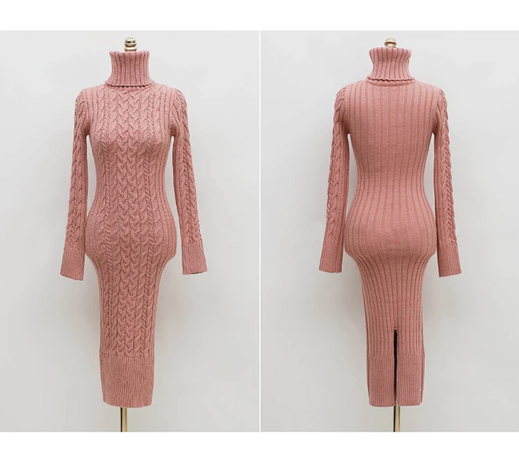 Product Name: Женское облегающее платье свитер с высоким воротом, трикотажное платье с длинным рукавом, весна осень 2019