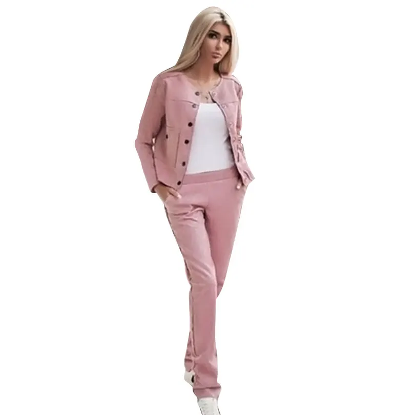 Special Offer Женский замшевый костюм из куртки и брюк MVGIRLRU, однобортный спортивный костюм из куртки без воротника и брюк, комплект из двух предметов в ул... Discount 44% Today!
