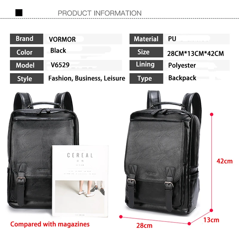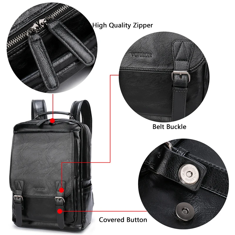 Product Name: Мужской школьный рюкзак VORMOR, черный кожаный рюкзак в консервативном стиле для подростков