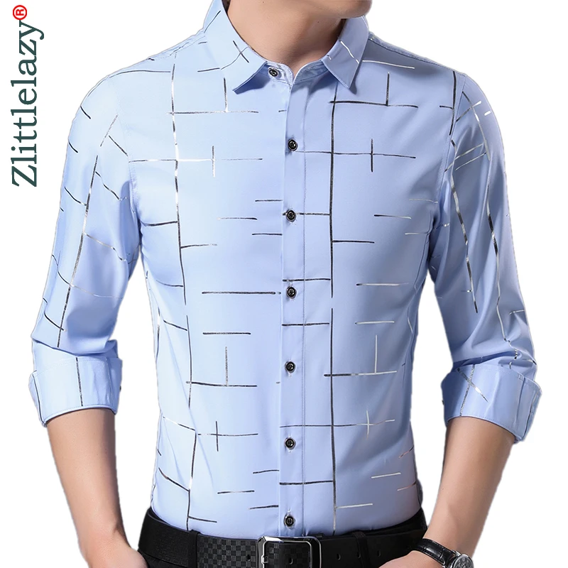 Product Name: 2019 брендовая Повседневная Роскошная приталенная Мужская рубашка в полоску с длинным рукавом, уличная одежда, винтажная рубашка, Мужская мо...