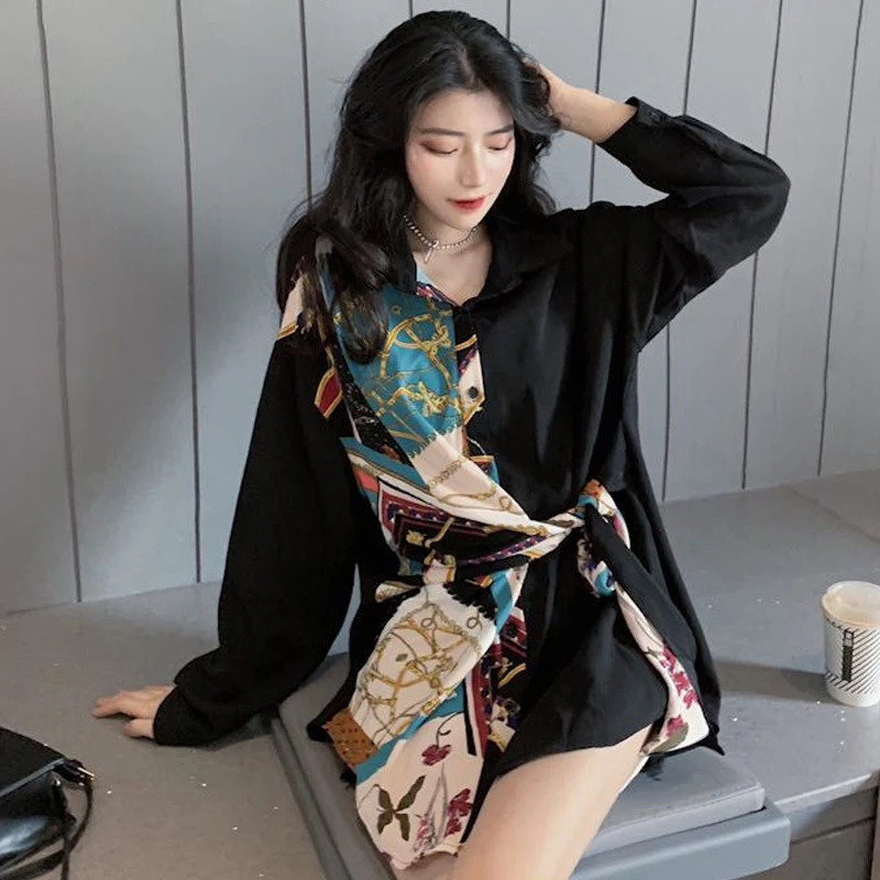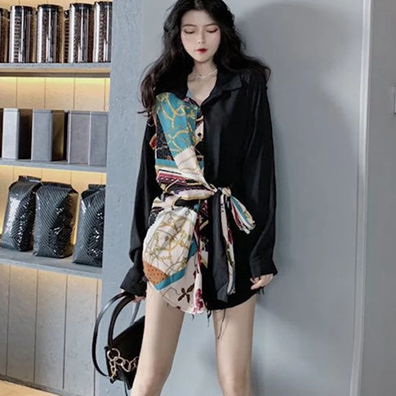 Special Offer Vangull Лоскутные женские блузки с регулируемым поясом, длинные шифоновые рубашки, весна 2020, новые свободные женские топы размера плюс с длинны... Discount 50% Today!