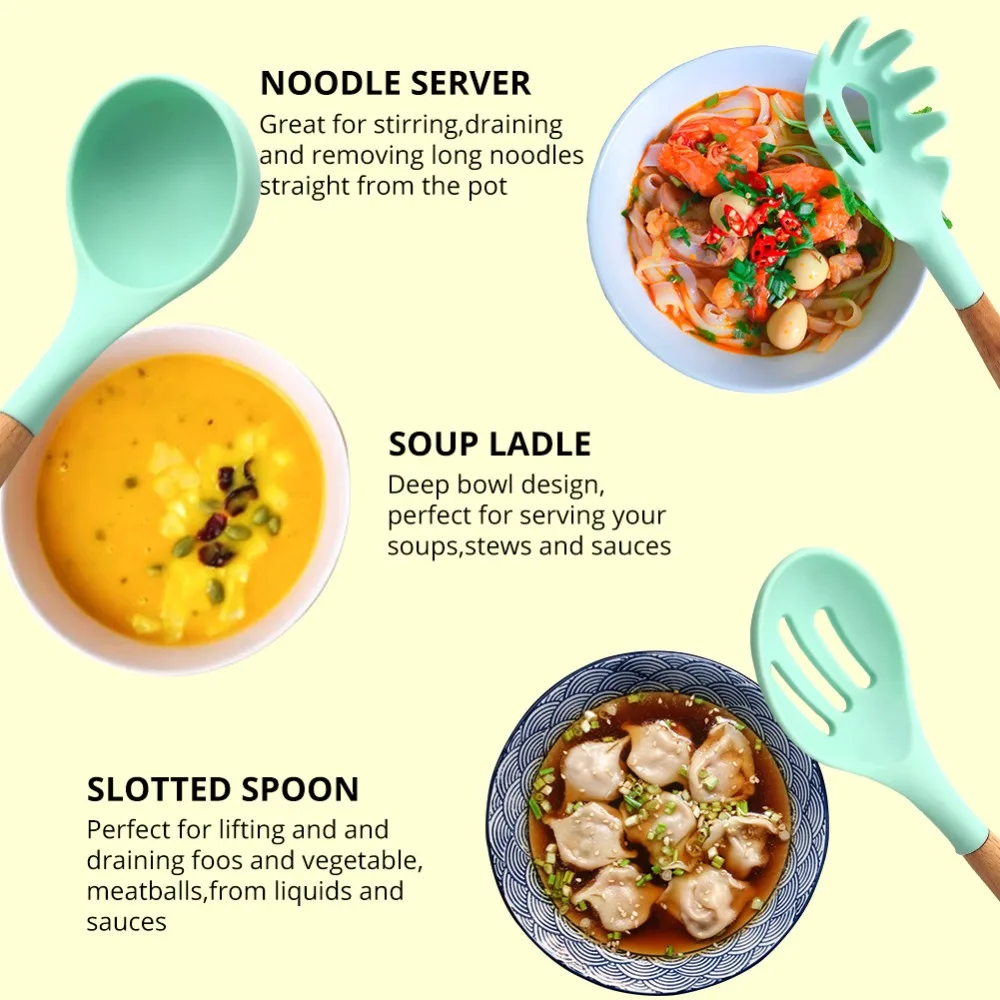 (51% Off) Купить Силиконовая кухонная утварь набор кухонной утвари 9 и 11 натуральная деревянная силиконовая утварь кухонные инструменты Гаджеты Цена Дешево