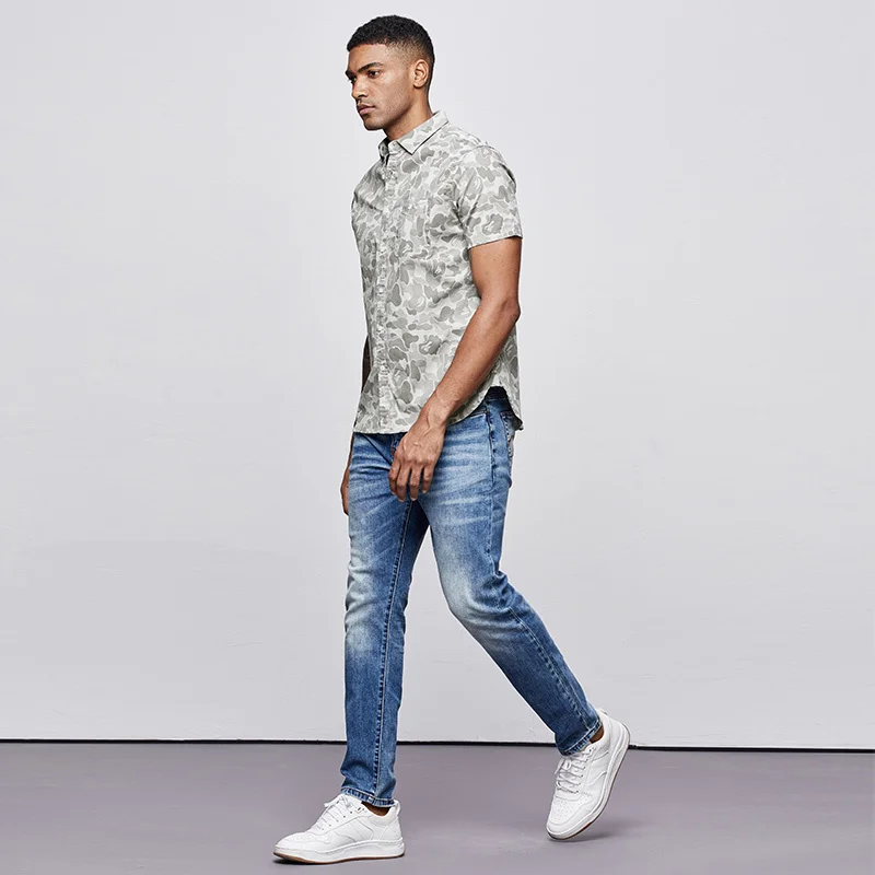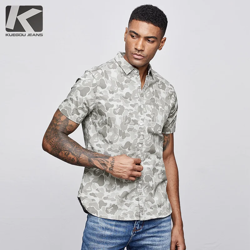 (67% Off) Купить Мужская рубашка в стиле милитари KUEGOU, хлопковая камуфляжная Повседневная приталенная с коротким рукавом, 8817, лето 2019 Цена Дешево