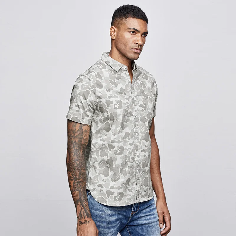 Product Name: Мужская рубашка в стиле милитари KUEGOU, хлопковая камуфляжная Повседневная приталенная рубашка с коротким рукавом, 8817, лето 2019