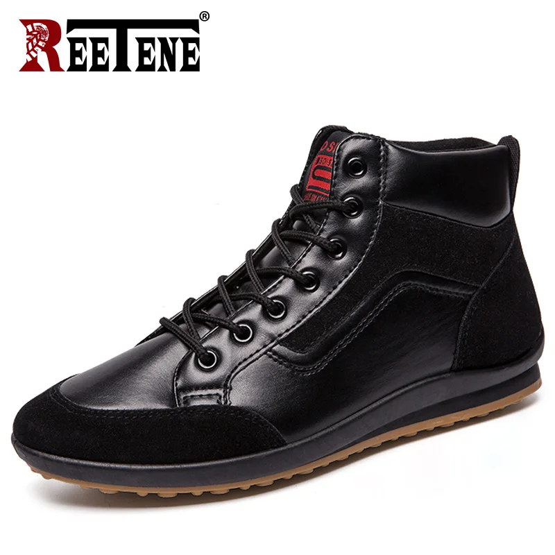 Product Name: Reetene 2019 г. Новые мужские кожаные ботинки модные осенне зимние теплые хлопковые мужские ботильоны мужская обувь на шнуровке мужская повседне...