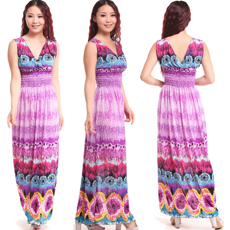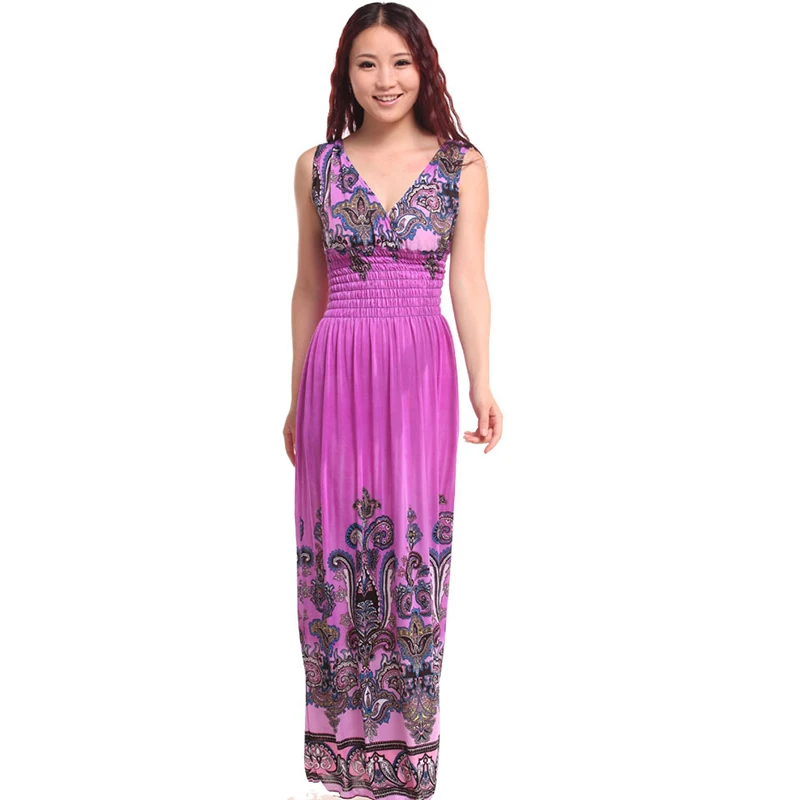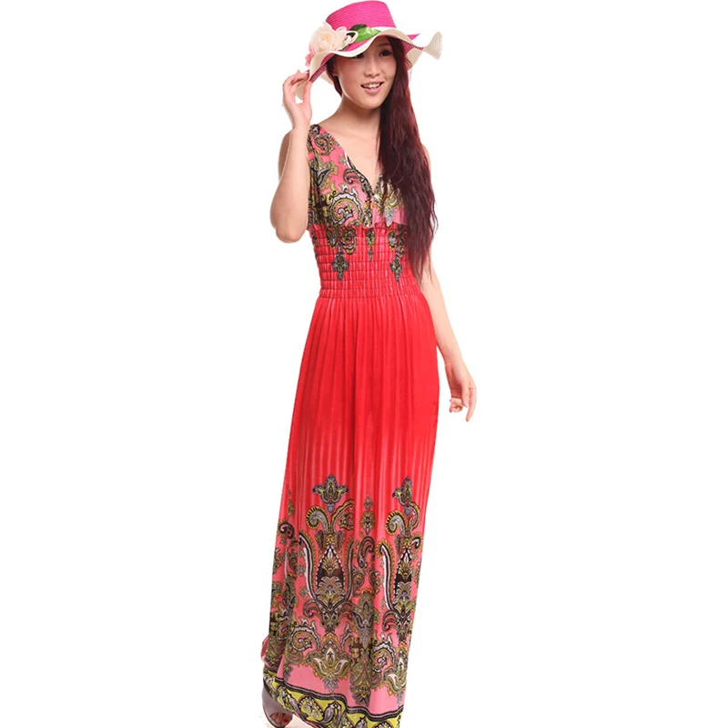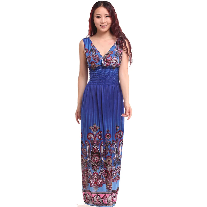 Special Offer 2019 летнее женское богемное платье с v образным вырезом, Пляжное длинное платье с принтом, без рукавов, на тонких бретелях, ниспадающие оборки... Discount 0% Today!