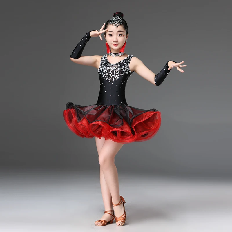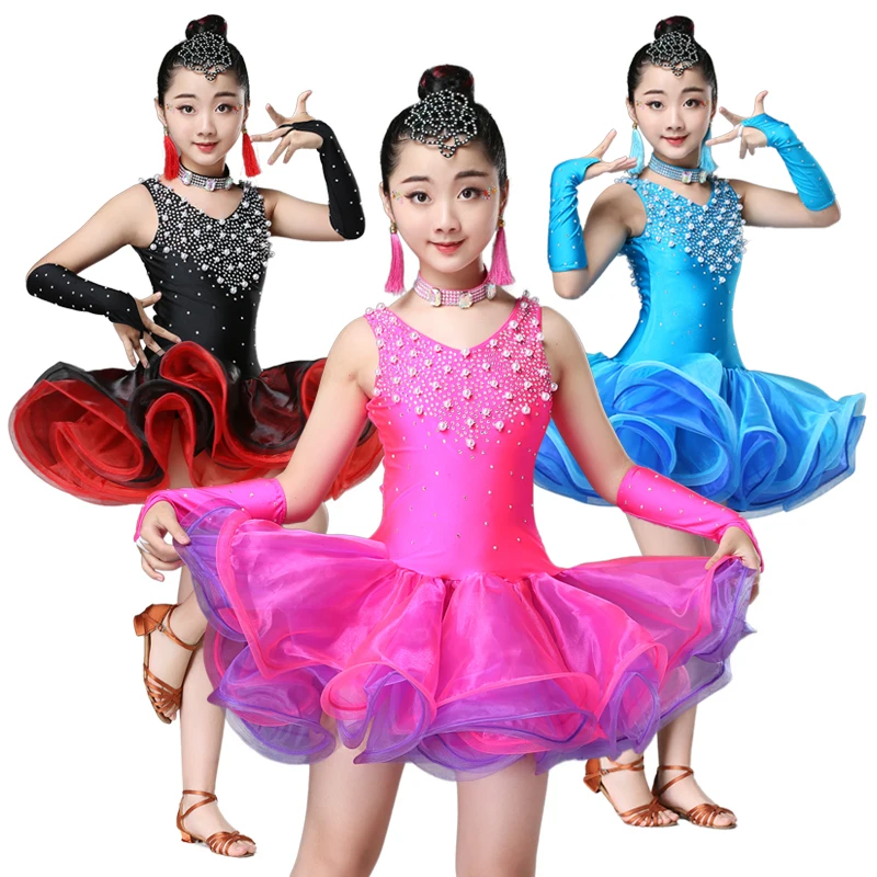 Product Name: Новинка; цвет черный, синий, розовый, красный; платье для латинских танцев для девочек; Детские платья для латиноамериканских танцев; костюм...