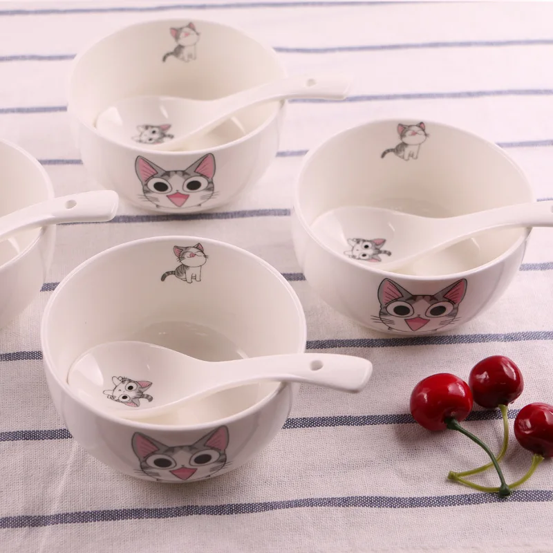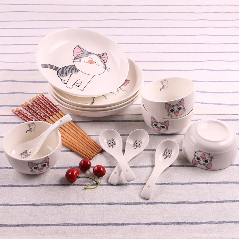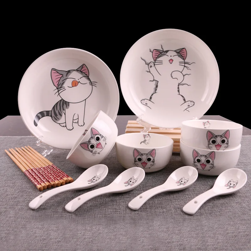 (20% Off) Купить 14 шт., милая керамическая посуда для кошек, миска, ложка, подарочный набор, кухонные инструменты приготовления пищи, домашняя посуда, фар... Цена Дешево
