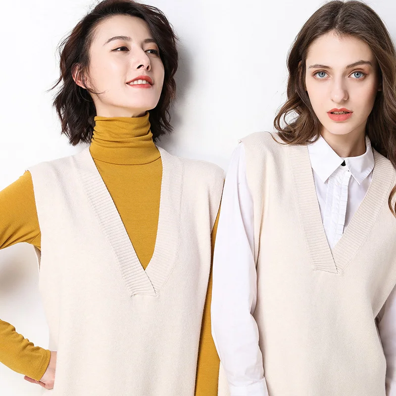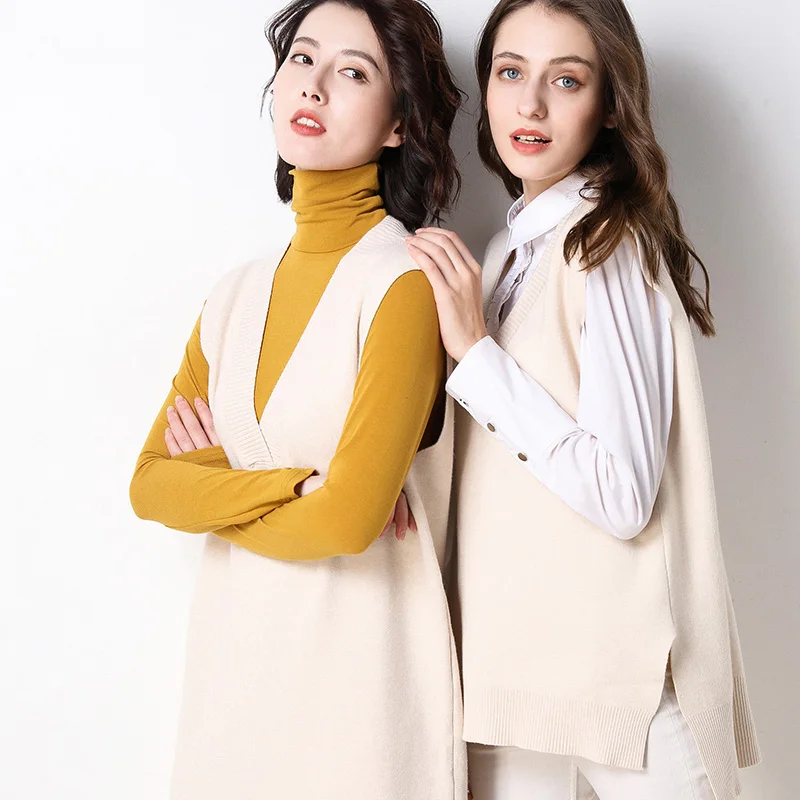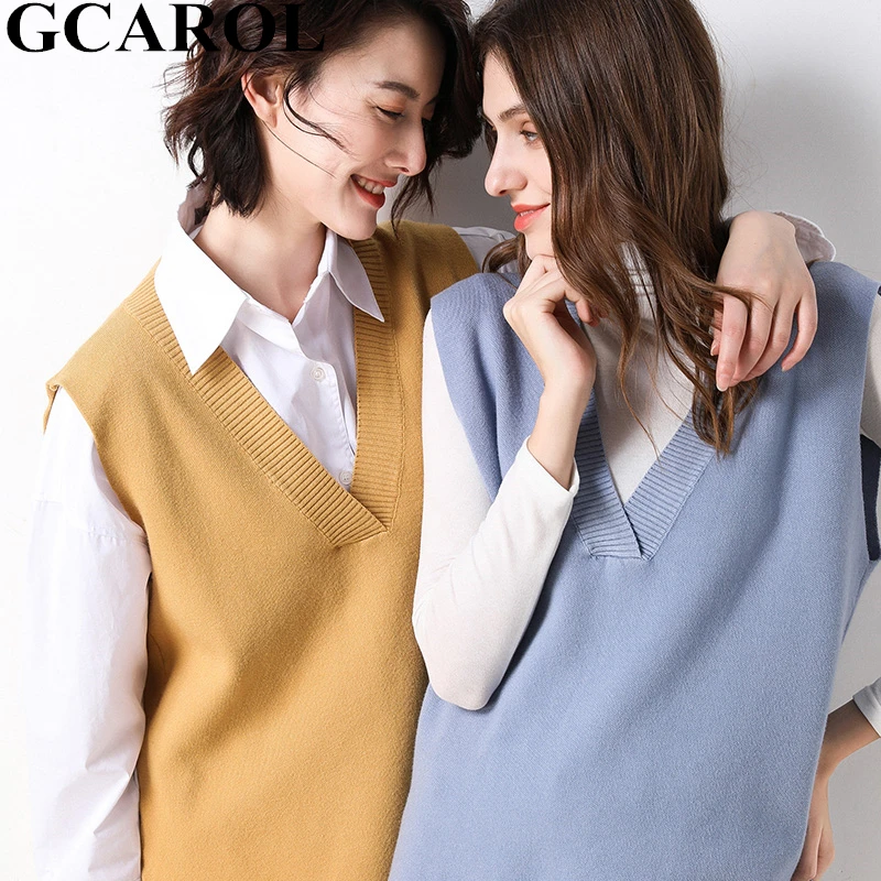 Product Name: GCAROL 2019 осенне зимний женский 30% шерстяной вязаный жилет с v образным вырезом с разрезом по бокам Асимметричный вязаный пуловер без рукавов с...