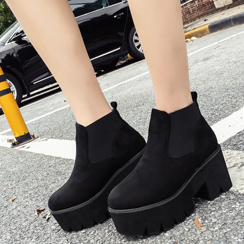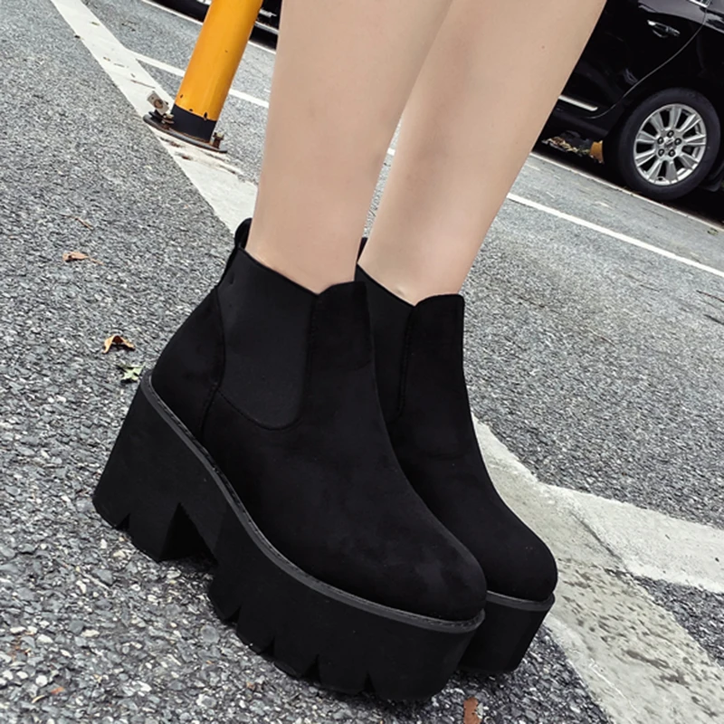 Special Offer Rimocy осенне зимние ботильоны для женщин из искусственной замши на высокой платформе с круглым носком; Botas Mujer; женская нескользящая обувь на н... Discount 31% Today!