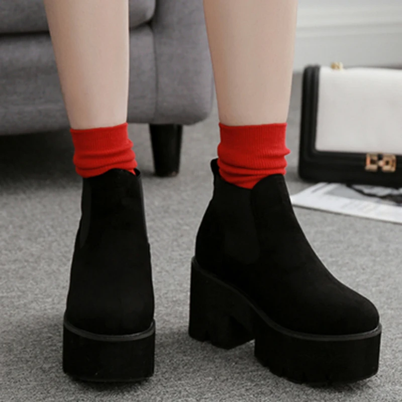 Product Name: Rimocy осенне зимние ботильоны для женщин из искусственной замши на высокой платформе с круглым носком; Botas Mujer; женская нескользящая обувь на н...