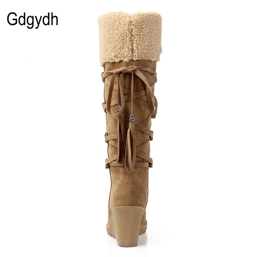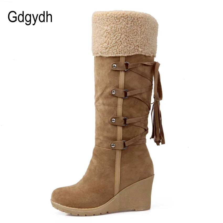 Product Name: Gdgydh модные плюшевые зимние сапоги; женские сапоги до колена на танкетке; Нескользящие сапоги; теплая женская обувь с хлопковой подкладкой; т...