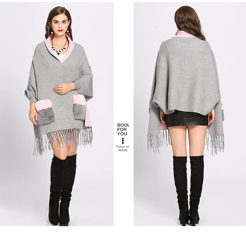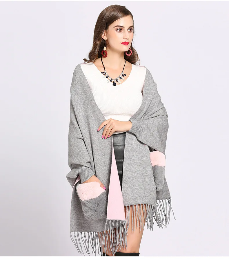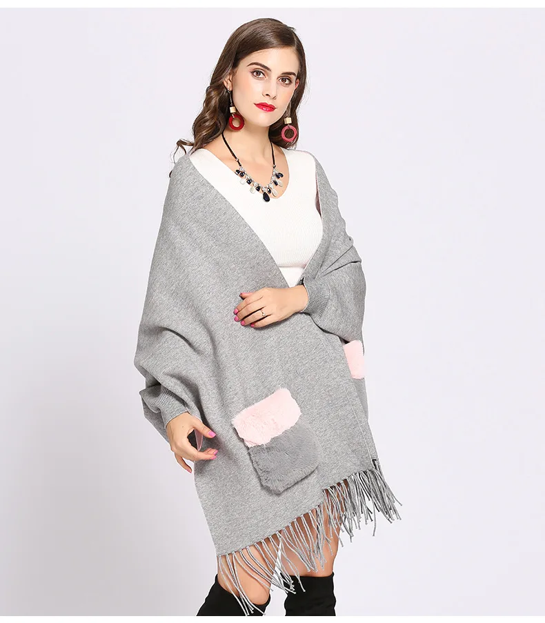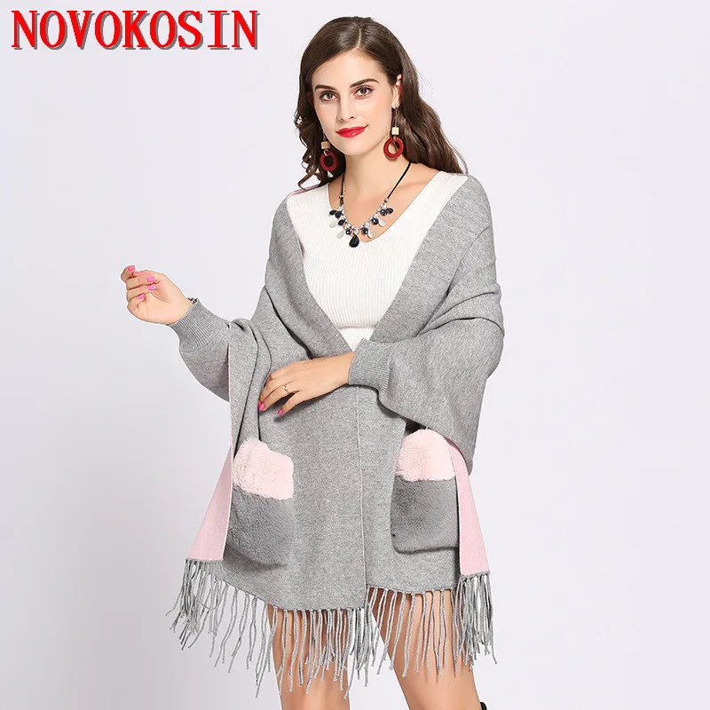 Product Name: SC197 2018 Женский вязаный шарф оверсайз с кисточками зимнее пончо из искусственного кашемира женская накидка с длинным рукавом винтажная шаль ...