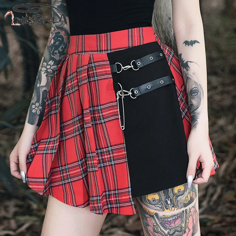 Special Offer Imily Bela Повседневная клетчатая мини юбка женская готическая Лоскутная комбинированная трапециевидная плиссированная юбка панк Jupe Femme стимп... Discount 40% Today!