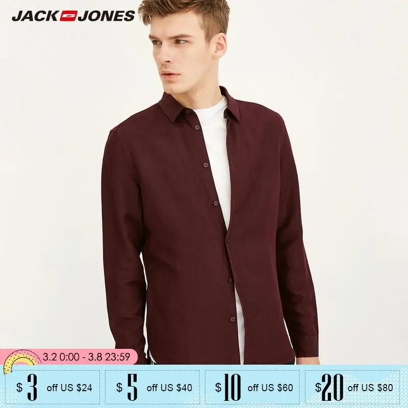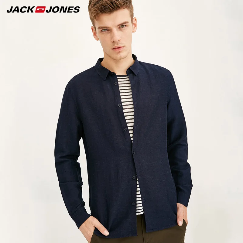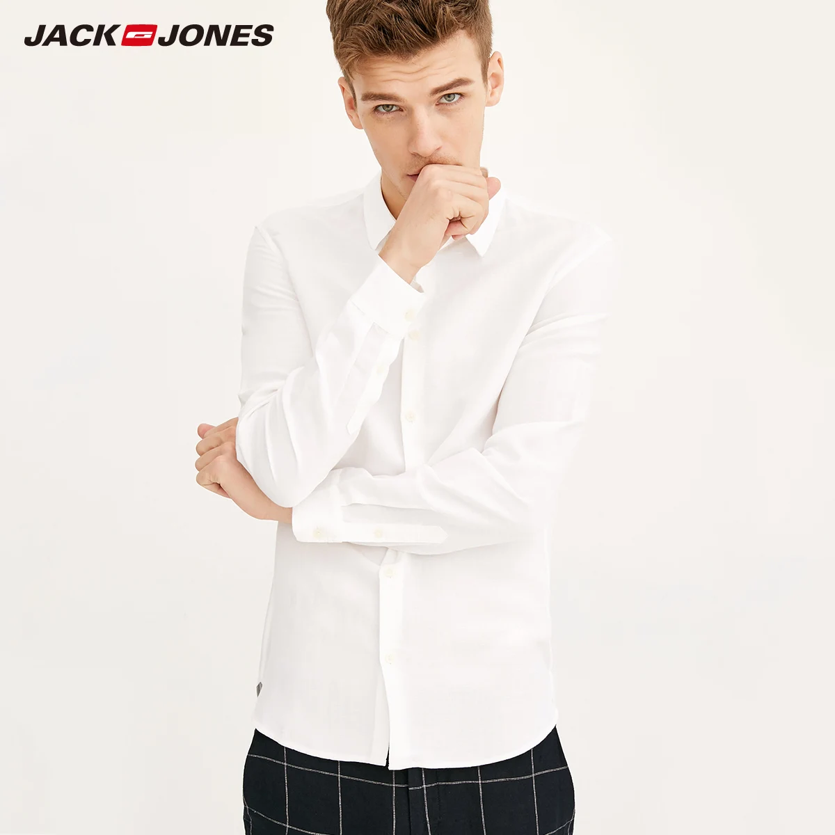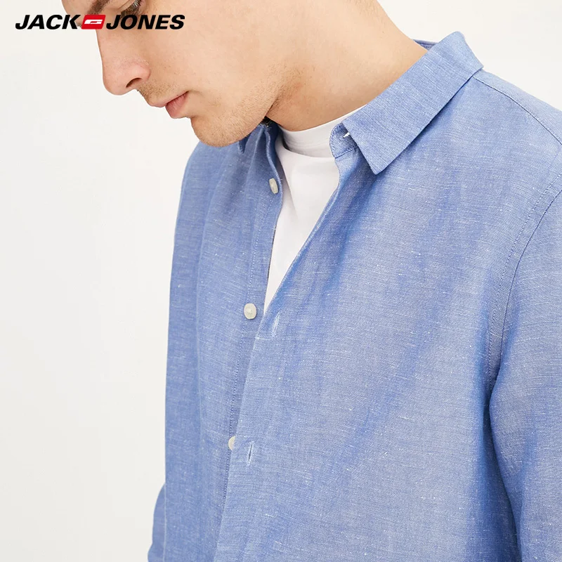 Special Offer Мужская повседневная приталенная рубашка Jack Jones, льняная рубашка с длинным рукавом, весна лето 217305502 Discount 40% Today!