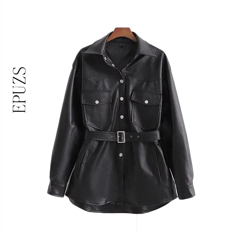 Special Offer Зимняя черная кожаная куртка женская байкерская куртка из искусственной кожи с поясом мотоциклетная куртка из искусственной кожи большие ... Discount 46% Today!