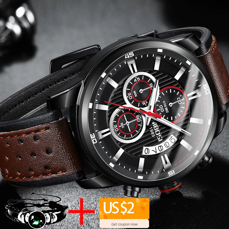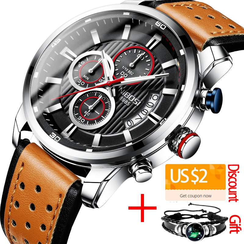 Product Name: Мужские наручные часы NIBOSI, спортивные часы класса люкс с золотым кожаным ремешком, Кварцевые водонепроницаемые часы для улицы, 2019