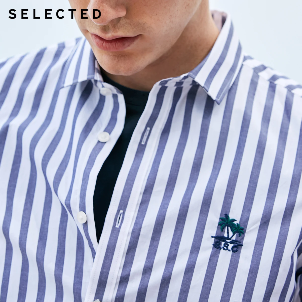 Special Offer Мужская хлопковая Повседневная рубашка в полоску с вышивкой, с коротким рукавом, модель 419204512 Discount 63% Today!