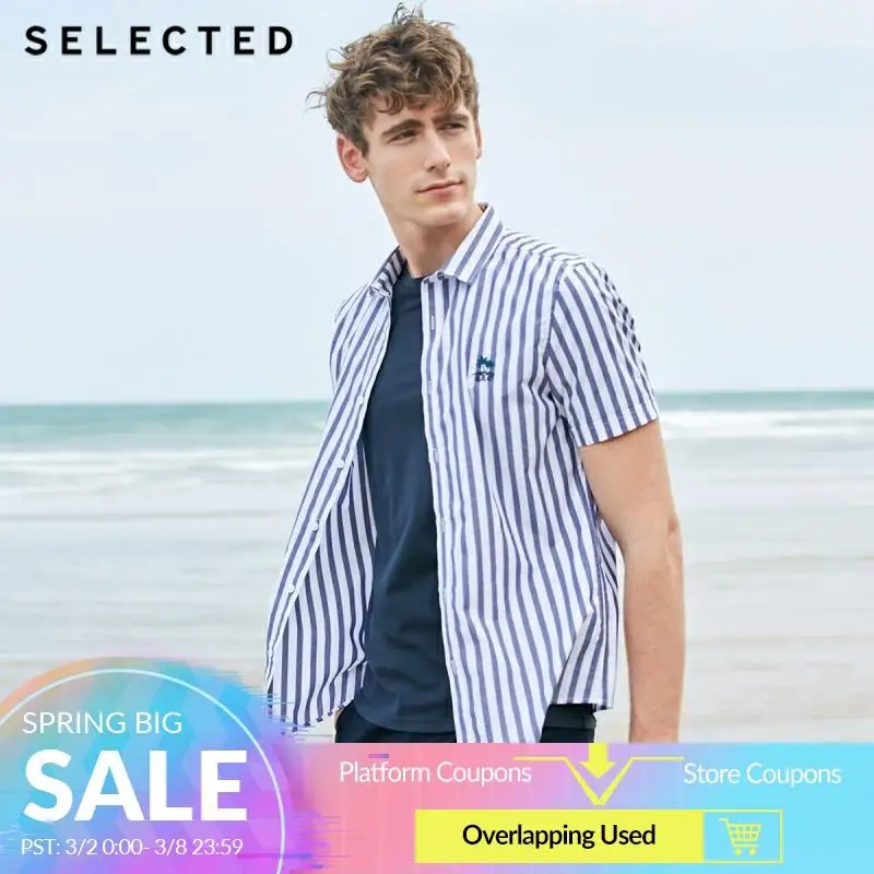 (63% Off) Купить Мужская хлопковая Повседневная рубашка в полоску с вышивкой, коротким рукавом, модель 419204512 Продажа Дешево