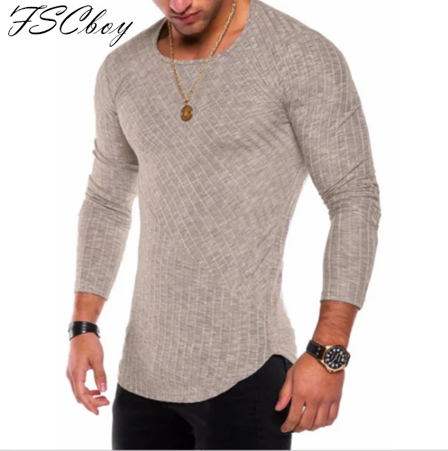 (0% Off) Купить Мужская облегающая Толстовка FSCboy, футболка с длинными рукавами и круглым вырезом, весеннее модное Повседневное платье Цена Дешево
