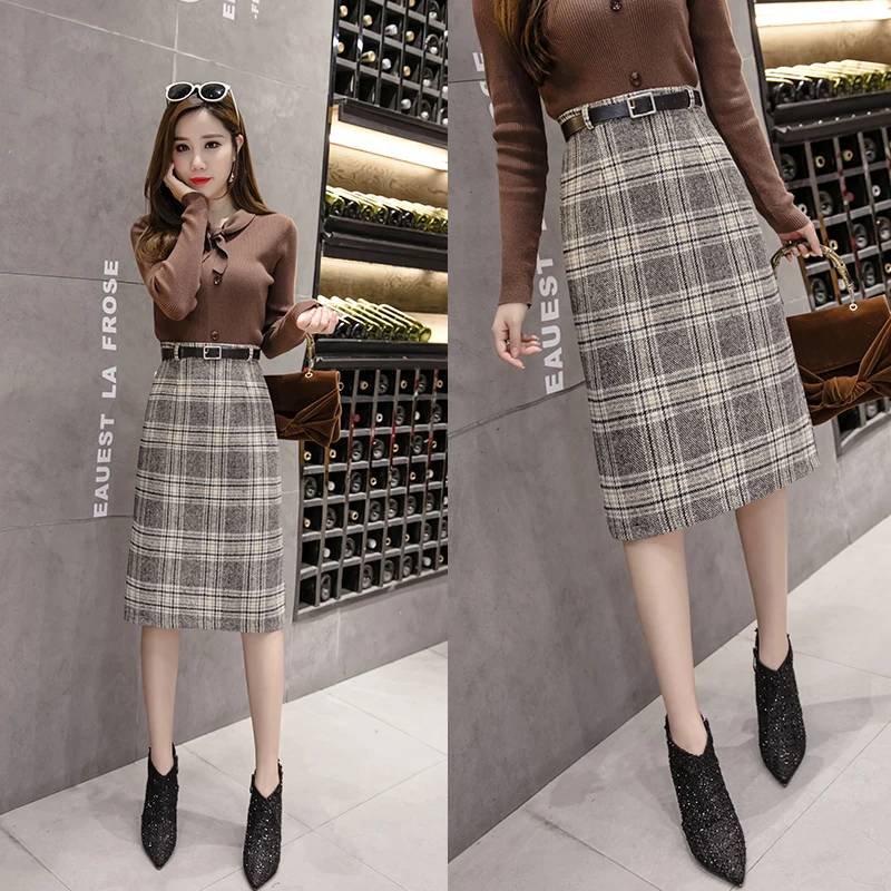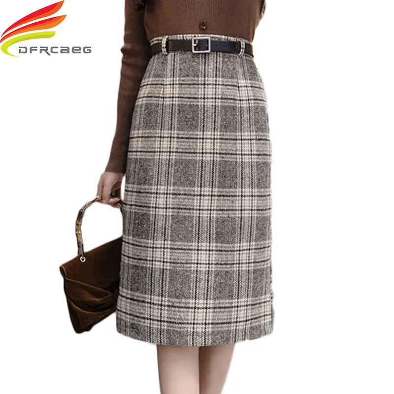 (10% Off) Купить Женская Шерстяная Юбка миди Faldas Saia, элегантная шерстяная юбка трапециевидной формы с высокой талией, зима 2019 Продажа Дешево