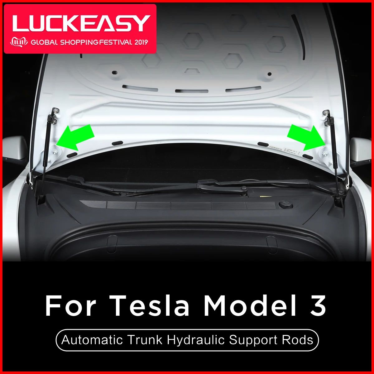 Product Name: LUCKEASY для Tesla модель 3 2017 2019 Автомобильная передняя крышка хвостовой багажник автоматическая гидравлическая машина Поддержка стержни 2 шт. ко...