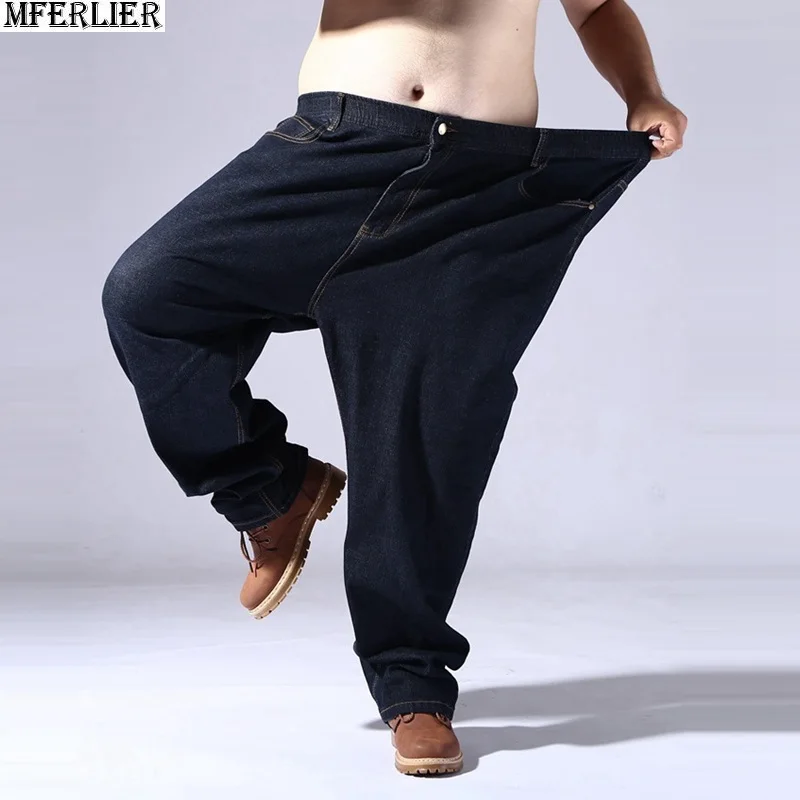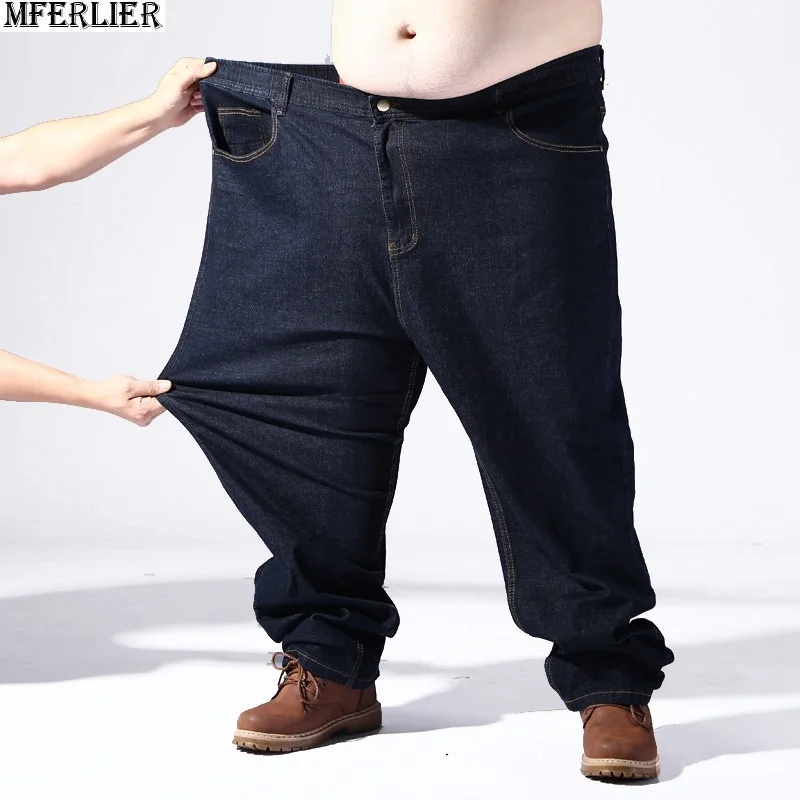 (25% Off) Купить Большие размеры, большие мужские джинсы 9XL 10XL 11XL 12XL, осенние брюки, эластичные прямые 50 54 56 58, Стрейчевые черные, размеры Цена Дешево