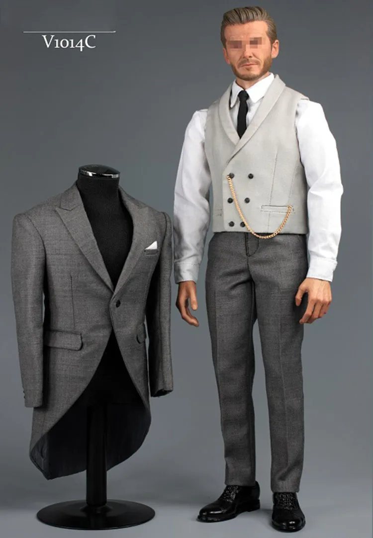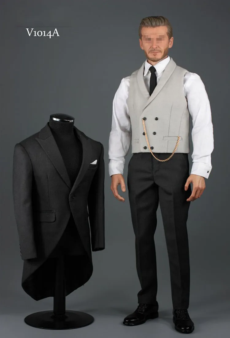 Product Name: V1014A B C черный серый 1 6 джентльменский костюм, комплект одежды, Королевский смокинг для 12 дюймов, Мужская фигурка, узкий плечо