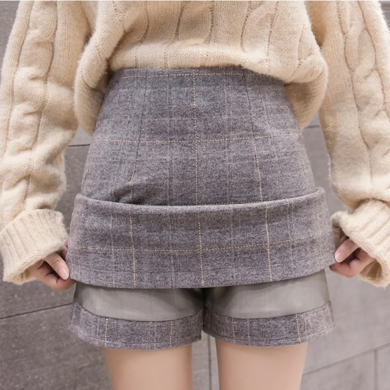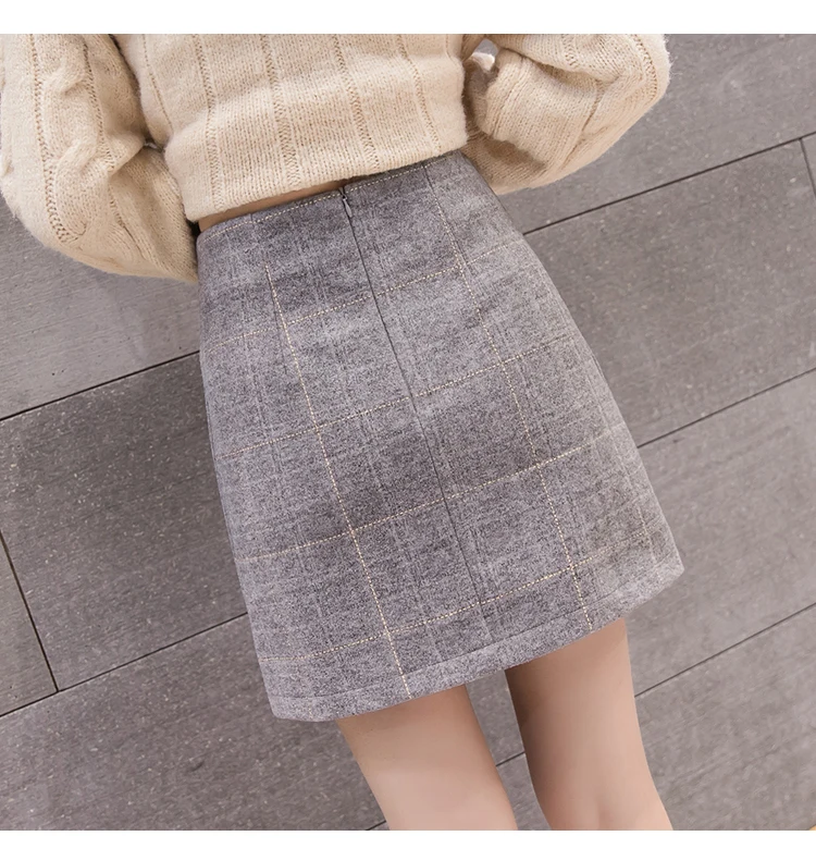Product Name: Утепленная шерстяная юбка; Женская осенне зимняя мини юбка в клетку с завышенной талией; женские теплые шерстяные ботинки; юбка; Faldas; больши...
