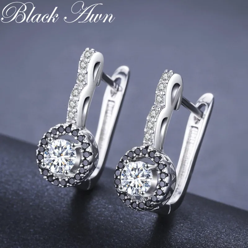 (40% Off) Купить Black Awn, новинка 2019, винтажные серьги кольца из натуральной 925 пробы, серебряные, для помолвки, женщин, черные и белые каменные украшения T001 Продажа Дешево