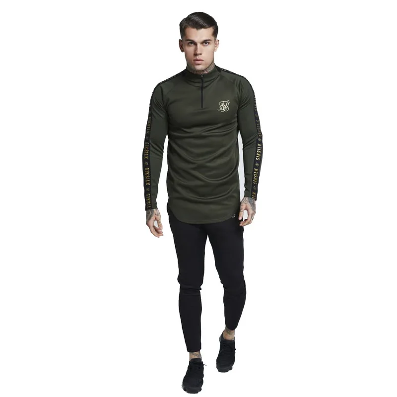 (40% Off) Купить Осенняя мода, высокая эластичность, Sik, шелковая футболка, Мужская футболка с длинным рукавом для фитнеса, Однотонная т... Цена Дешево