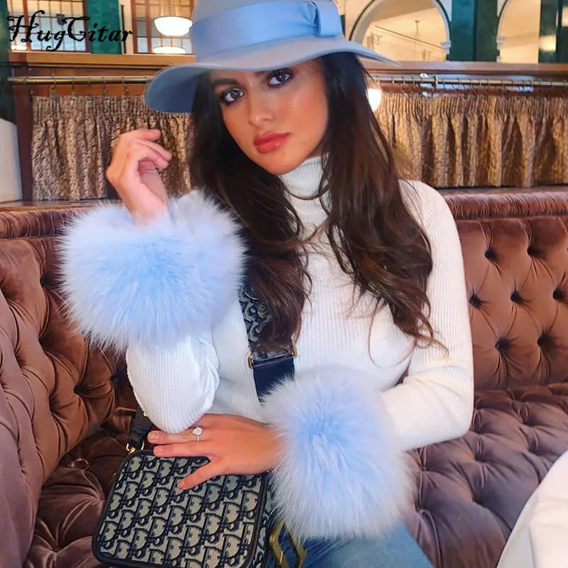 Special Offer Hugcitar 2019 с длинным рукавом лонгслив с мехом с высоким воротом футболки Осень Зима Женское тянущийся Тощий уличная одежда топы волчки Discount 42% Today!