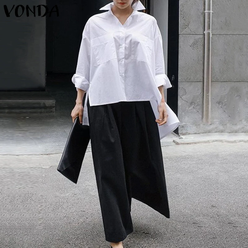 Special Offer Асимметричная туника, рубашки с отворотом, VONDA, женские вечерние топы, весна лето 2019, пляжные топы, женские блузки, повседневные блузки разме... Discount 42% Today!