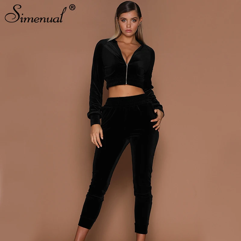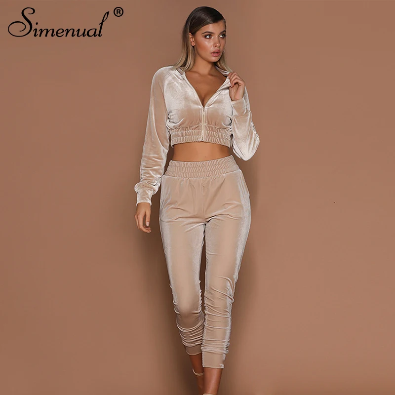 Special Offer Simenual бархатные повседневные спортивные женские комплекты для тренировок, Осень зима, модные спортивные костюмы с длинным рукавом, комплект... Discount 43% Today!