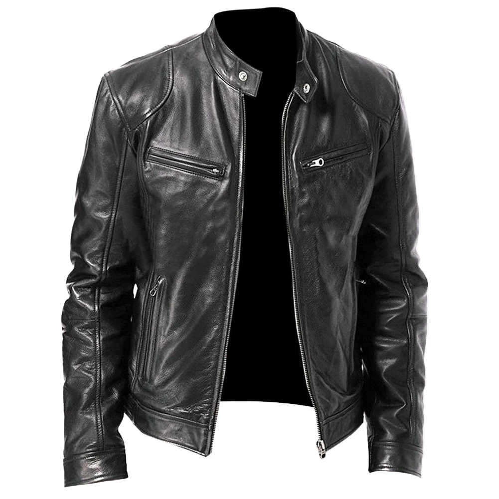 (49% Off) Купить 2020 Мужская куртка осень зима стоячий воротник молния приталенная мотоциклетная короткое пальто ветрозащитная теплая новинк... Продажа Дешево