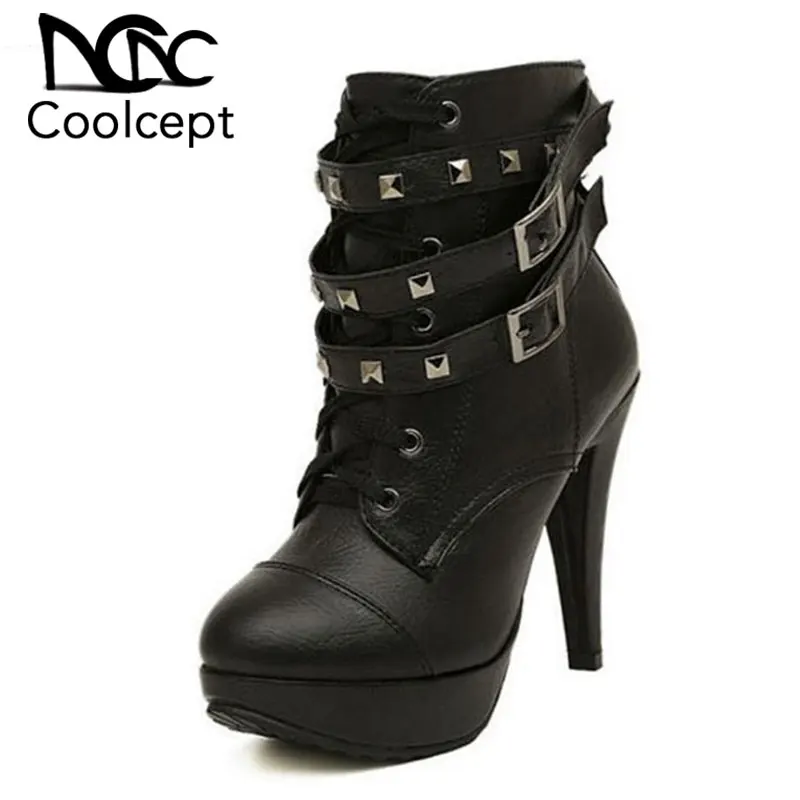 Special Offer Coolcept ботинки на высоком каблуке в стиле панк; женские ботильоны; модная женская обувь на молнии со шнуровкой; женская обувь для вечеринок; се... Discount 50% Today!