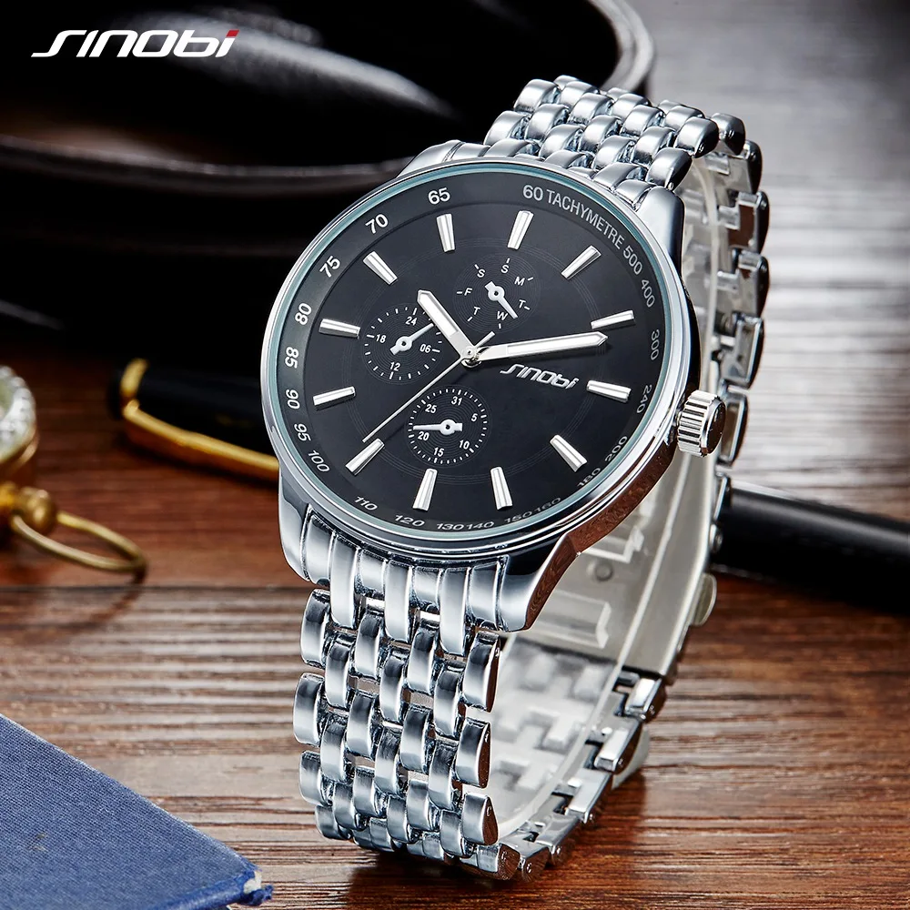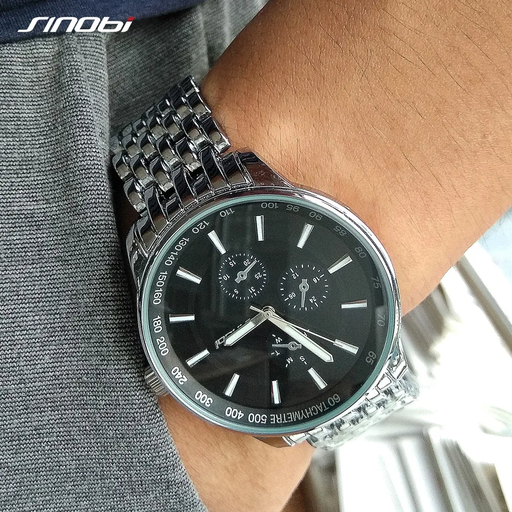 (50% Off) Купить SINOBI Мужские часы Топ бренд Роскошный металлический ремешок наручные мужские подарок кварцевые Скидка Relogio Masculino скидка продукт Цена Дешево
