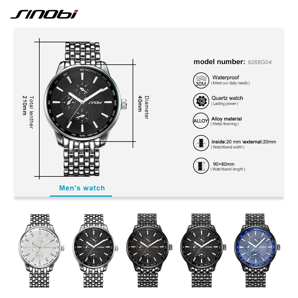 Product Name: SINOBI Мужские часы Топ бренд Роскошный металлический ремешок наручные часы мужские подарок кварцевые часы Скидка Relogio Masculino скидка продукт