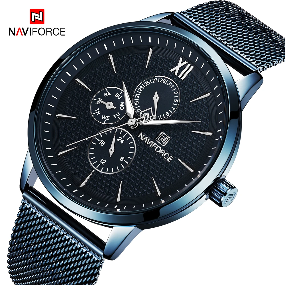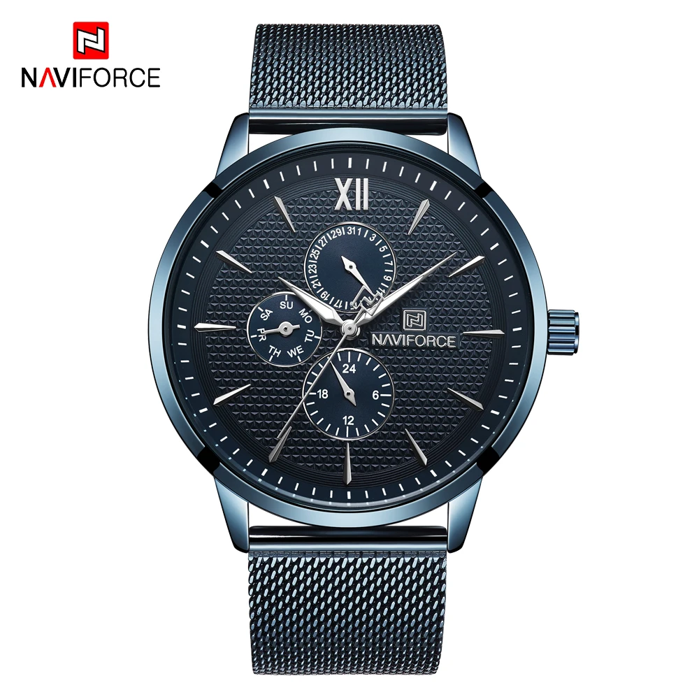 Product Name: NAVIFORCE Топ бренд часы мужские модные ультра тонкие кварцевые наручные часы Роскошные синие стальные Бизнес водонепроницаемые часы мужские ч...