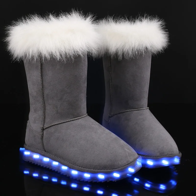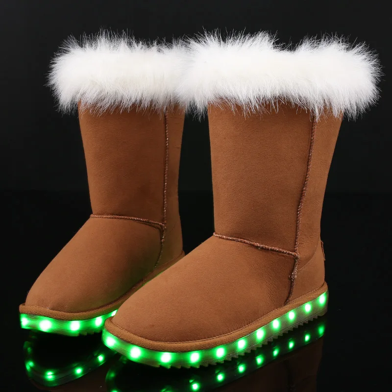 (54% Off) Купить UncleJerry 2019 зимние ботинки для мальчиков и девочек; Светодиодный светильник с зарядкой от USB; теплые на меху высоким берцем Продажа Дешево