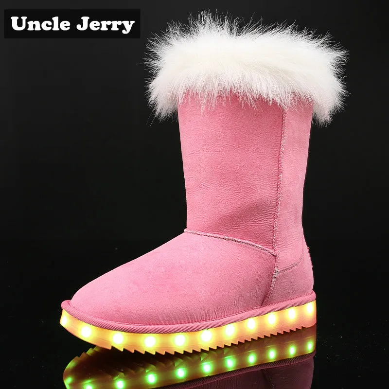 Product Name: UncleJerry 2019 зимние ботинки для мальчиков и девочек; Светодиодный светильник с зарядкой от USB; теплые зимние ботинки на меху с высоким берцем