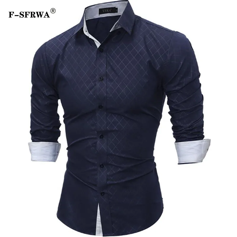 Special Offer Мужские рубашки в клетку F SFRWA, повседневные облегающие рубашки с длинным рукавом, размеры XXXL, 2019 Discount 0% Today!