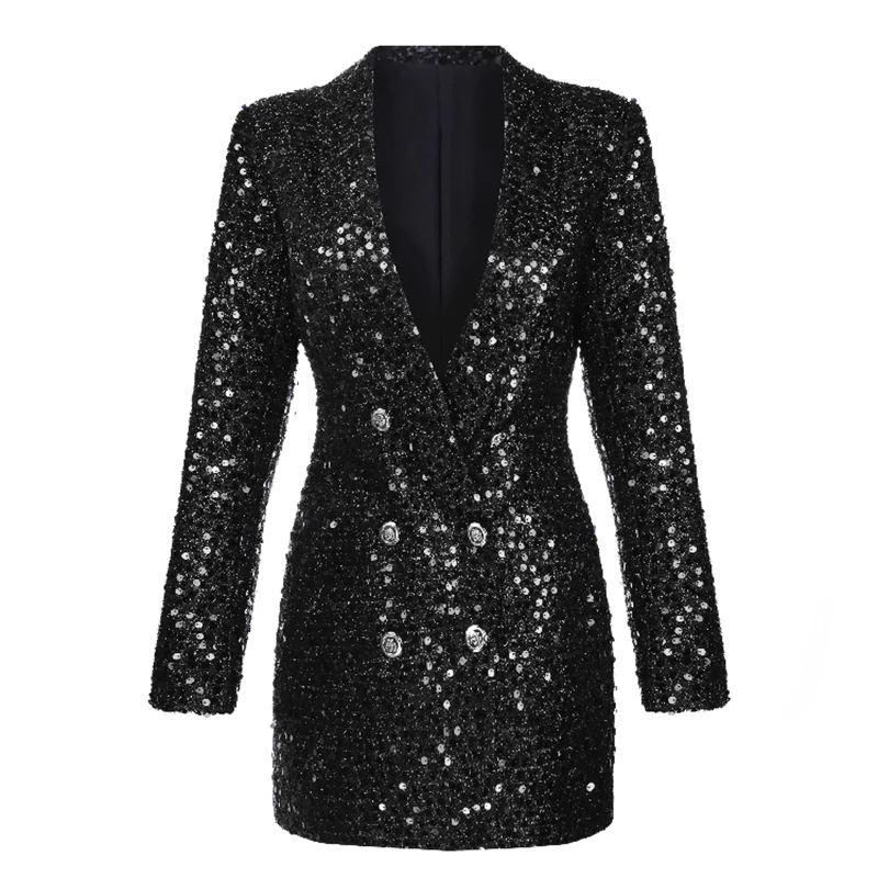 Product Name: Высококачественный новейший модный дизайнерский Блейзер 2020, женский двубортный блейзер с отложным воротником и блестками, Длинный блейзер...