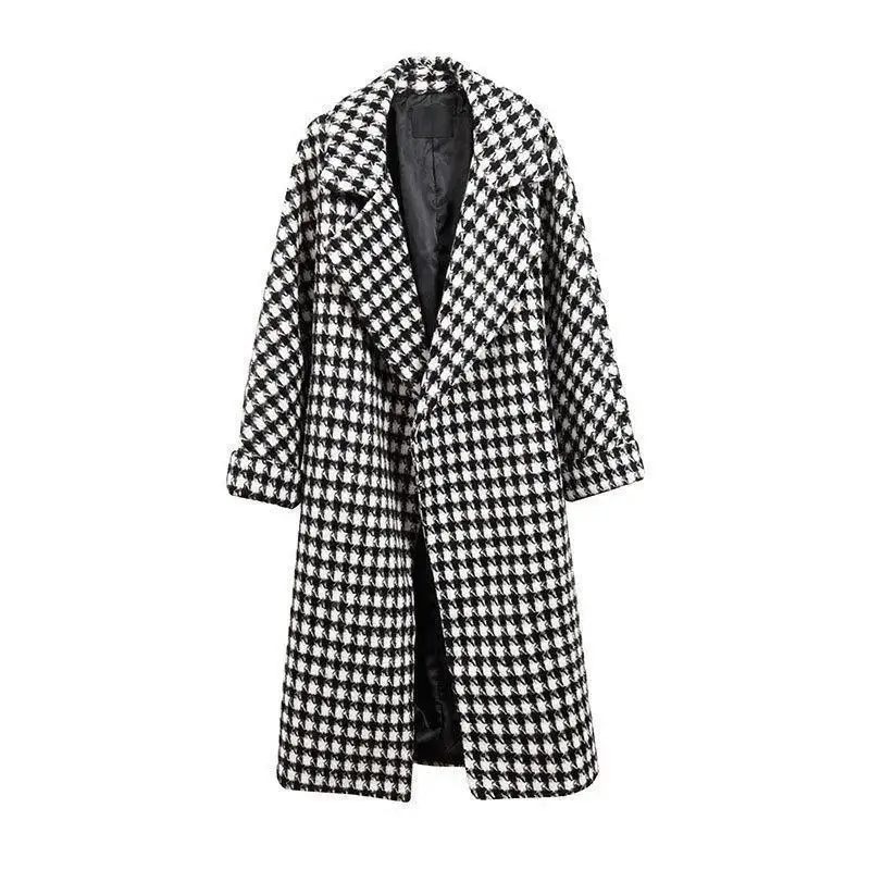 Product Name: Винтажное черно белое клетчатое длинное шерстяное пальто mujer, новинка 2019, осенне зимняя модная женская верхняя одежда с отложным воротником...