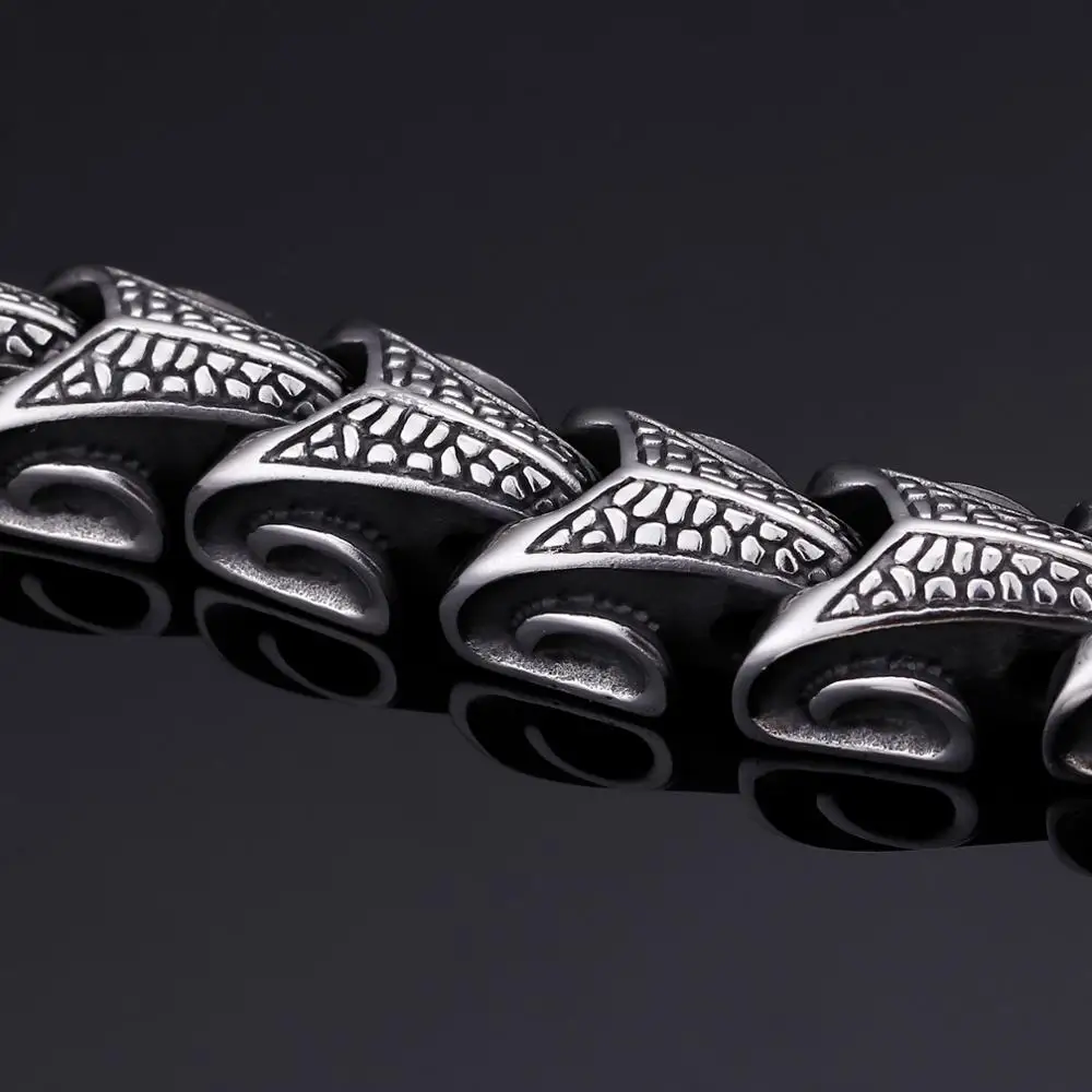Product Name: Fongten Винтажная с драконом черный браслет из нержавеющей стали мужские браслеты в стиле панк Модные ювелирные изделия
