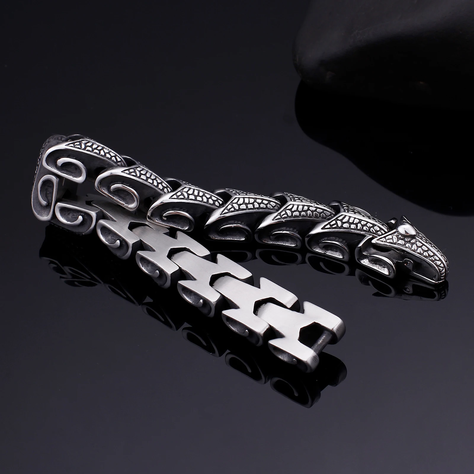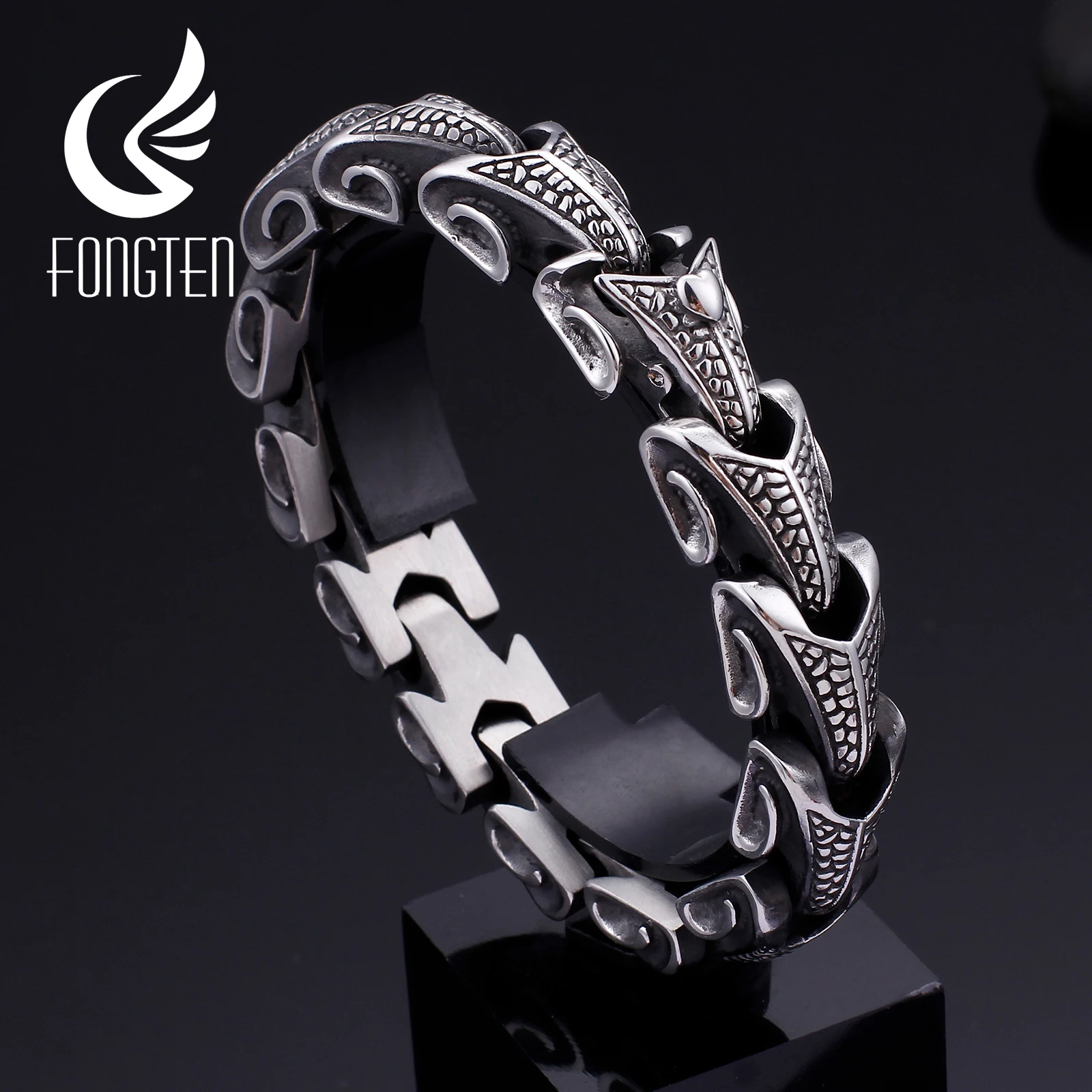 Special Offer Fongten Винтажная с драконом черный браслет из нержавеющей стали мужские браслеты в стиле панк Модные ювелирные изделия Discount 25% Today!
