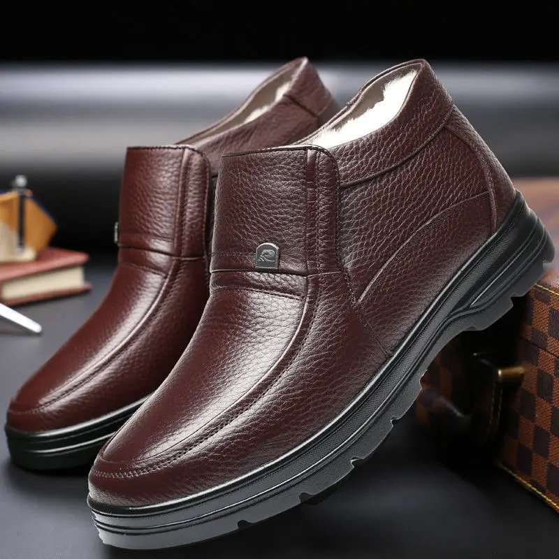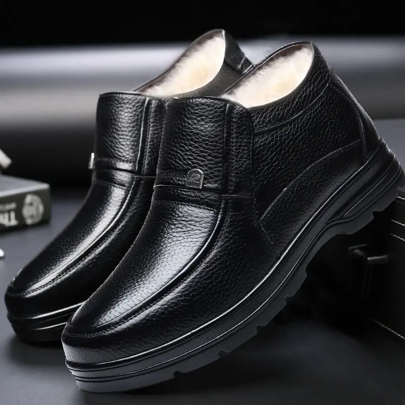 Product Name: Зимние мужские белые ботинки из натуральной кожи на овечьем меху Повседневная Теплая обувь с высоким берцем в британском стиле обувь из сме...