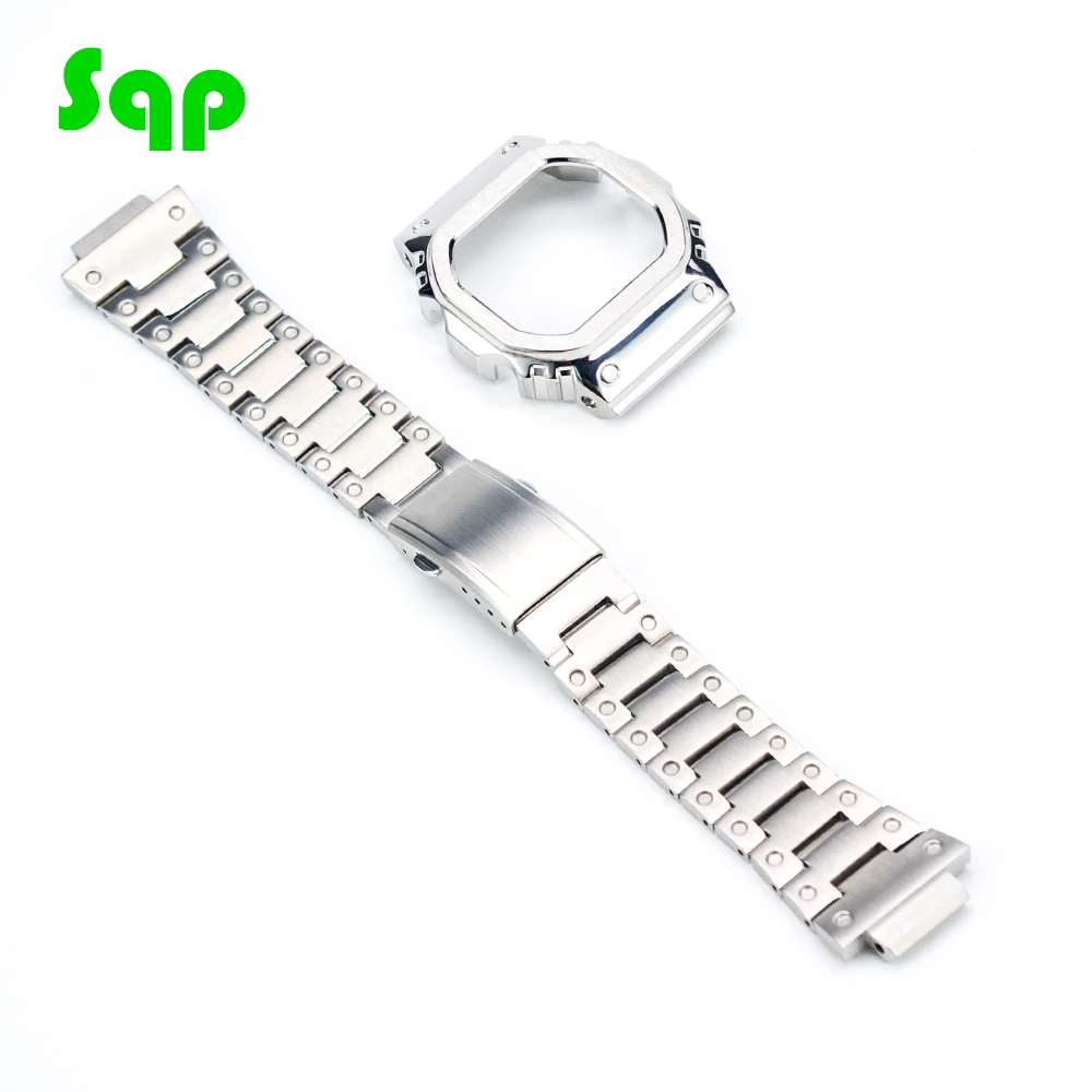 Product Name: Серебряный набор обновления модификации ремешок для часов ободок Чехол DW5600 5610 Металл 316L нержавеющая сталь Ремешок