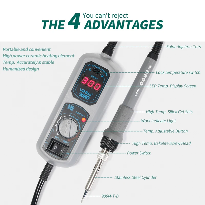 Product Name: Паяльник YIHUA 60 Вт по Цельсию по Фаренгейту с регулируемой температурой сварочная станция электронный компонент Электрический Утюг