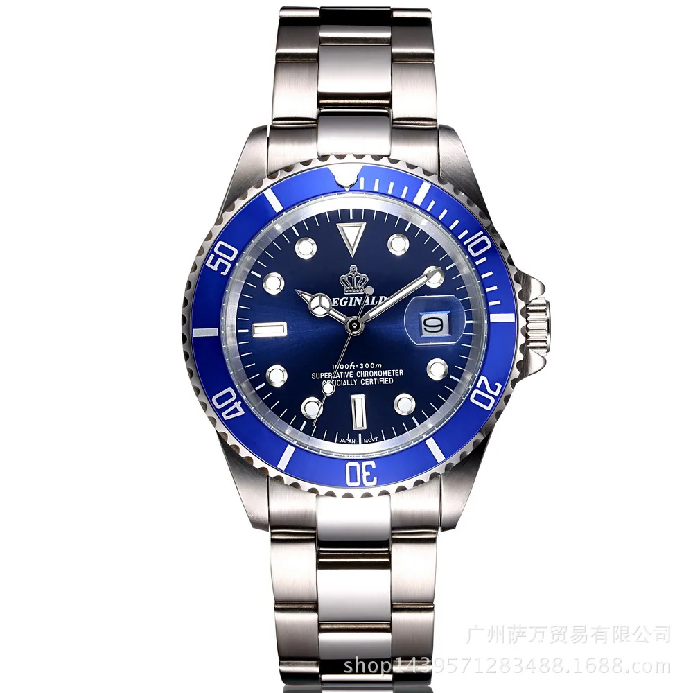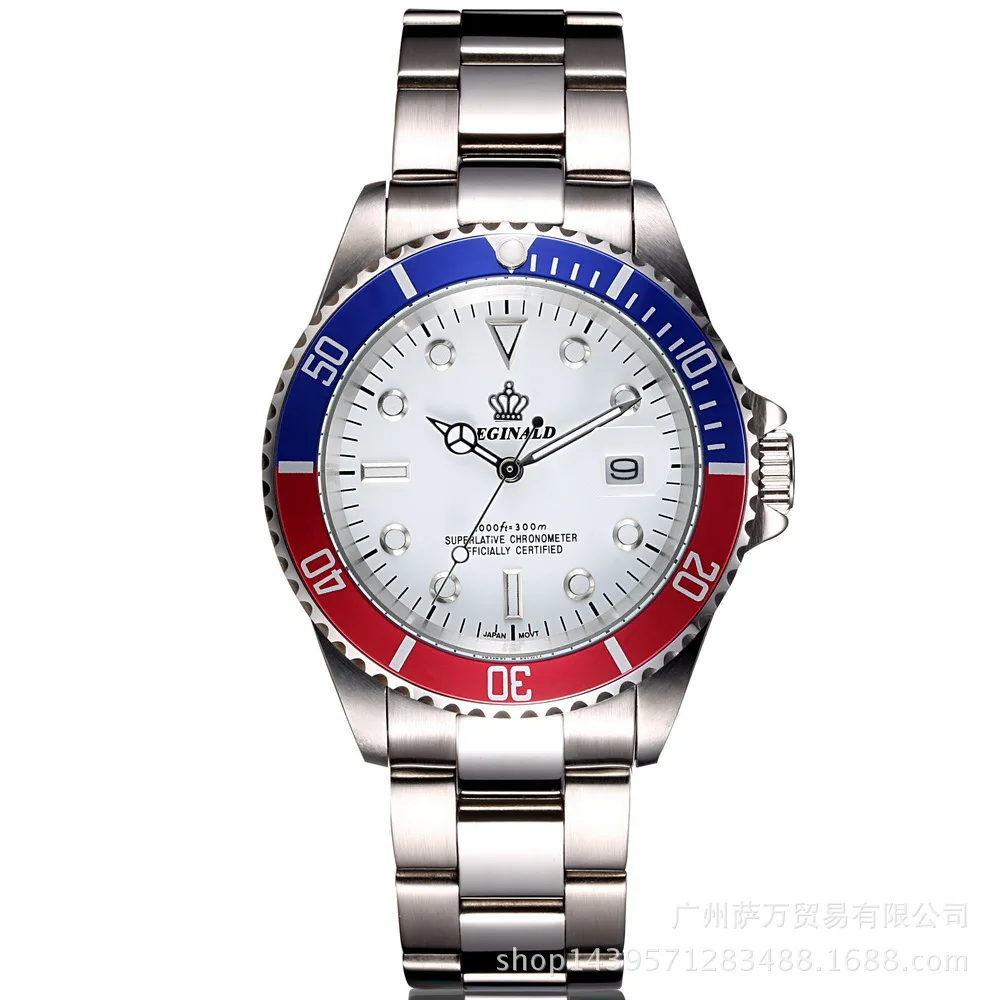 Product Name: Кварцевые мужские часы REGINALD Crown, деловые повседневные мужские часы со стальным календарем, японские водонепроницаемые кварцевые наручные ч...